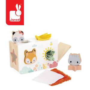 Janod Sorter drewniany pudełko sensoryczne z chusteczkami Pure 12m+