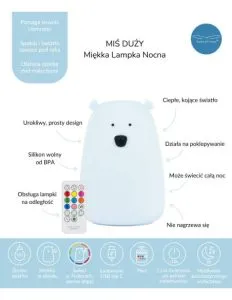 Rabbit & Friends: Miś Duży, Świecący w Ciemności, Lampka Silikonowa z Pilotem