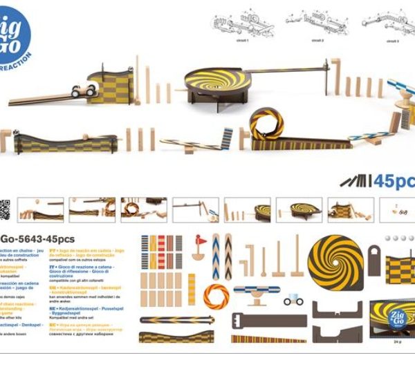 W skład zestawu wchodzą: 110 magnetycznych elementów, w tym części dróg, schody spiralne i klasyczne, balkony, ogrodzenia, microMAGS oraz podwozie z kołami i osiami.
