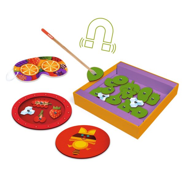Inzebox to seria magnetycznych układanek od Djeco. Dzieci układają drewniane elementy magnetyczne na metalowym pudełku, tworząc stylizacje widniejące na kartach