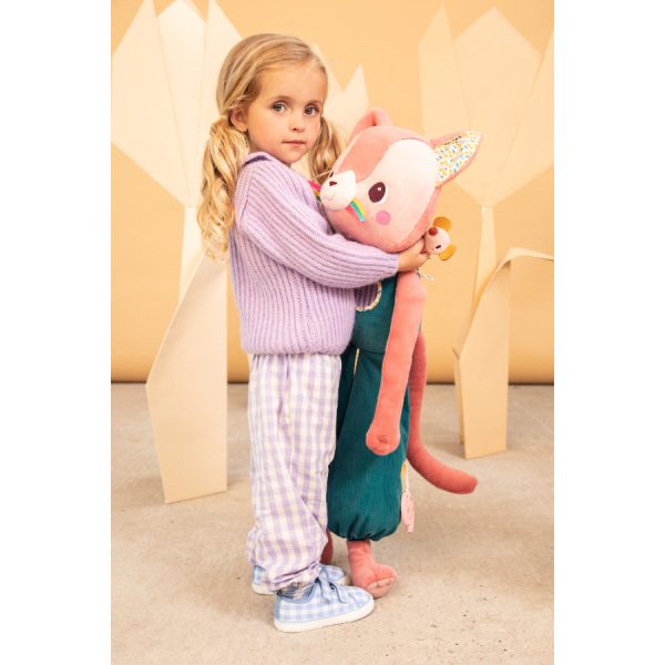 Przytulanka aktywizująca z kolekcji Kotka Jeanne belgijskiej marki Lilliputiens to niebanalne, miękkie i wielofunkcyjne źródło rozrywki i nauki dla ciekawskich