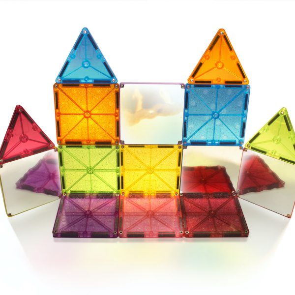 15-elementowy zestaw klocków magnetycznych Stardust, zawierający klocki z brokatem i lustrami. Sprawi, że Twoje dzieła będą lśniły! Stymuluj rozwój podczas