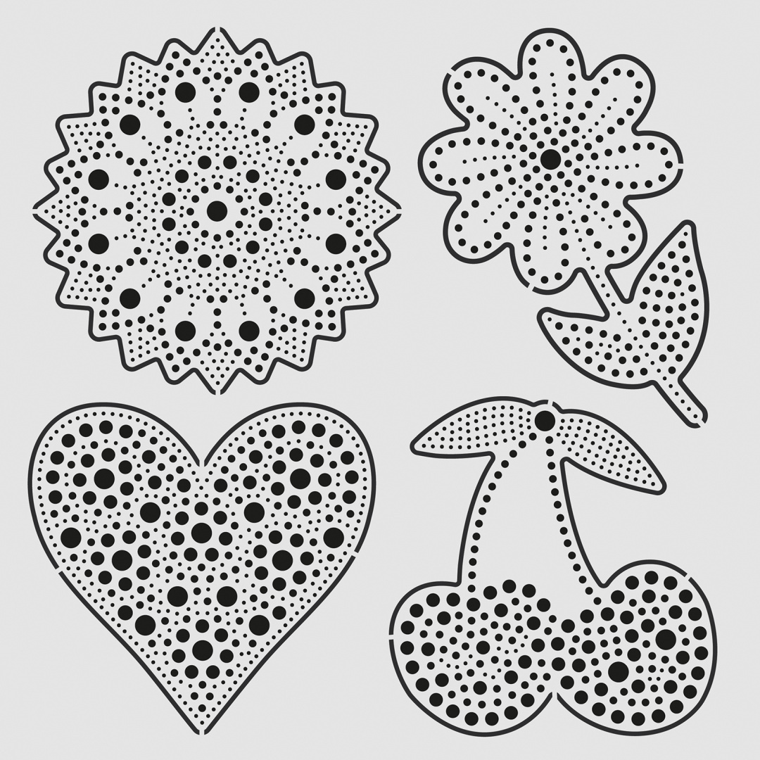– Odrysuj kropki za pomocą szablonu i ołówka, a następnie nałóż farbę za pomocą narzędzi do malowania kropkami.