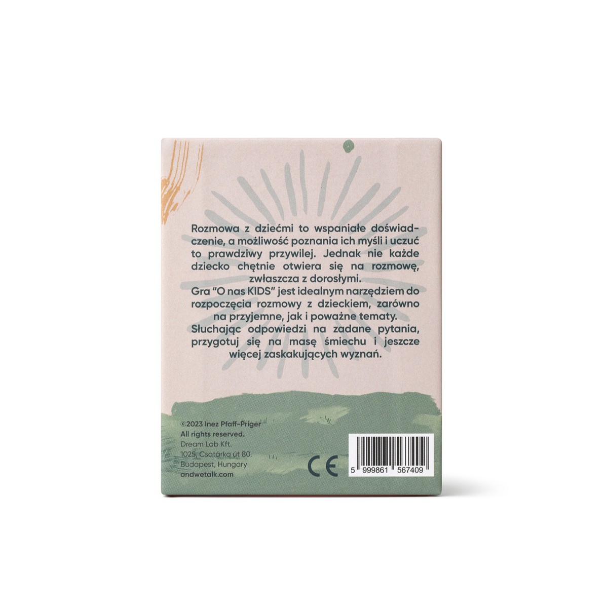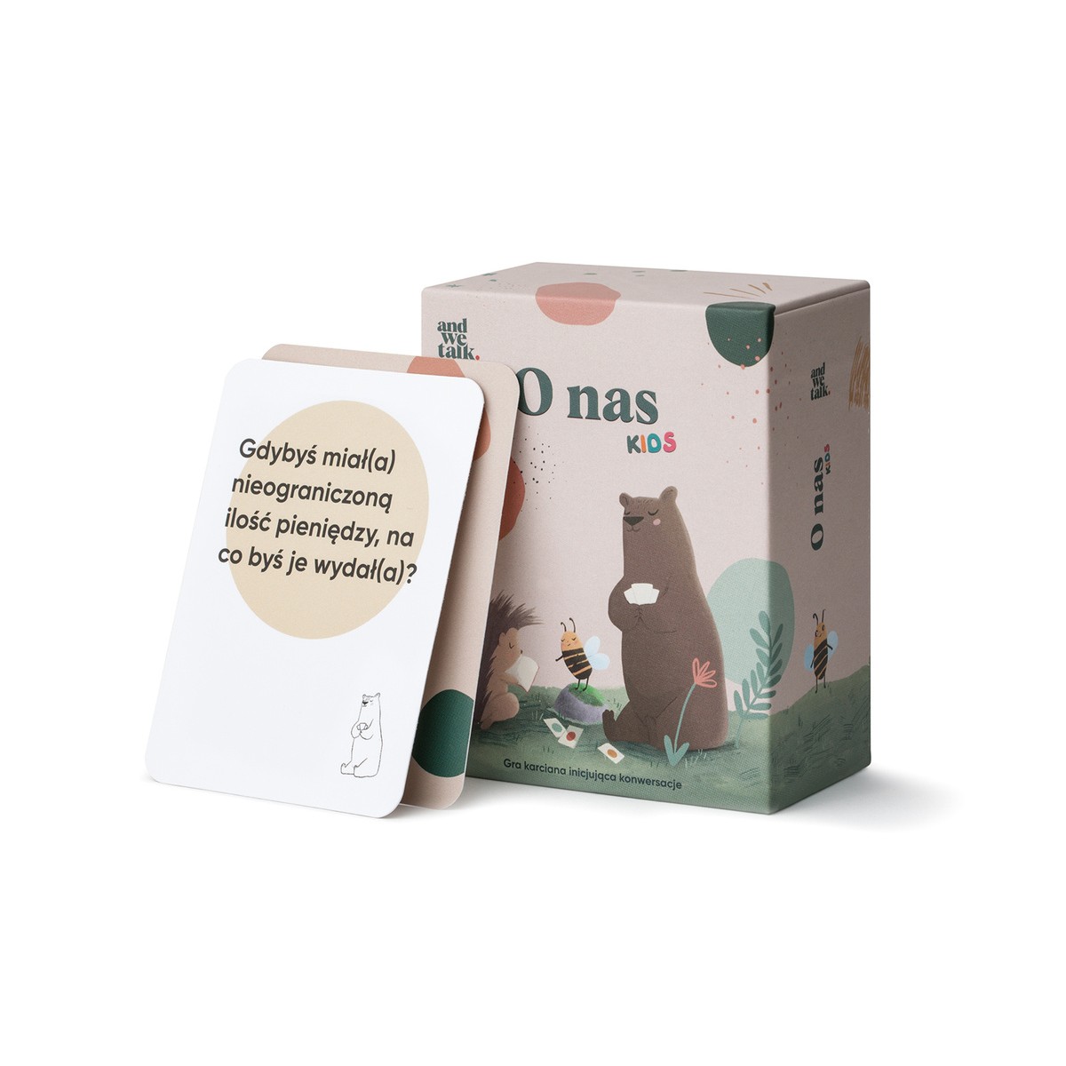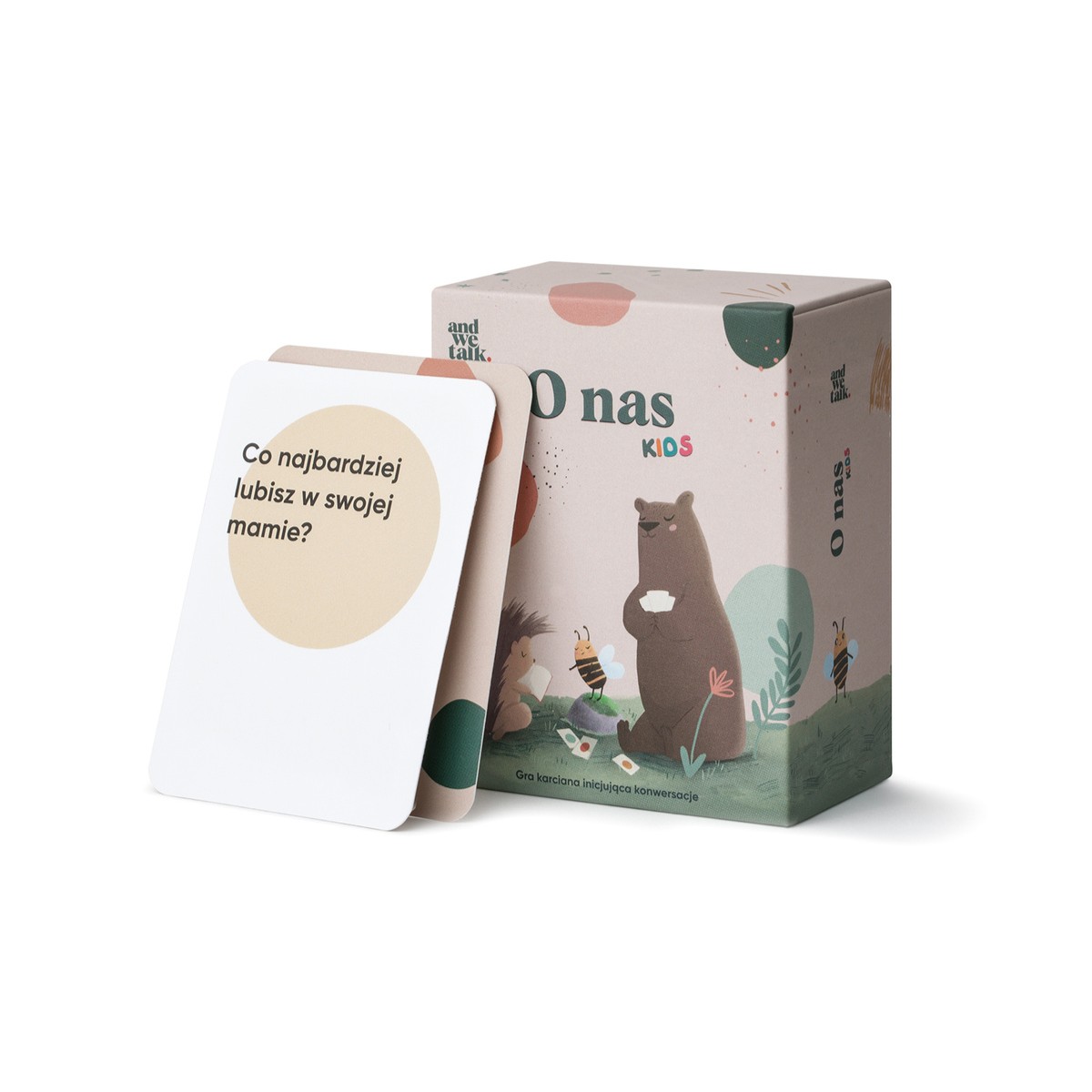 Poznaj grę, która łączy dzieci, rodziców i bliskie osoby w szczerej rozmowie – idealna okazja, by lepiej poznać swoje dziecko i wspólnie spędzić czas pełen uśmiechu, refleksji i głębszych pytań. „O nas Kids” to zestaw 80 kart z pytaniami stworzonymi z myślą o młodszej generacji.