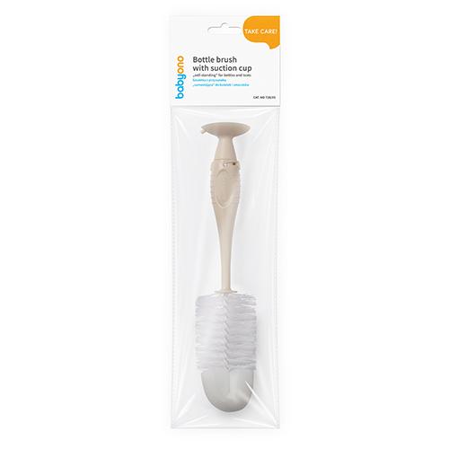 BABYONO: szczotka do butelek i smoczków z przyssawką i chowaną mini szczoteczką beżowa