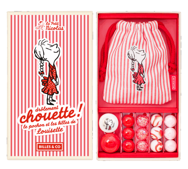 Billes&Co LOUISETTE to zestaw 14 szklanych kulek i kamyczków, kolorystycznie ułożonych w pięknie zdobionym pudełku. W zestawie znajduje się materiałowy woreczek do przechowywania zawartości. Przeróżne barwy, tekstury i wzory kulek posiadają hipnotyzującą moc, która nie pozwoli oderwać się od zabawy. Kulki są ułożone tematycznie, tworząc w małych pudełeczkach swoiste uniwersa.
