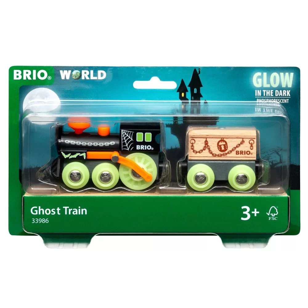 Coś upiornego jedzie po torach: Ten upiorny parowóz ma świecące w ciemności koła i detale, które ożywają po zmroku. Niepokojąco podąża za nim drewniana skrzynia – ale co może być w środku?