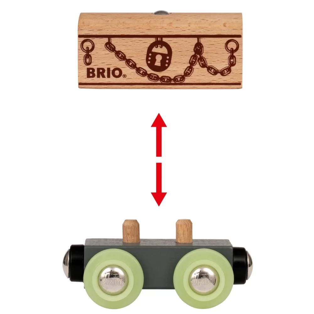 Wyposażony w kultowe magnetyczne połączenia, ten pociąg i jego ładunek są gotowe do podłączenia do innych pojazdów kolejowych BRIO World, wagonów i dźwigów.