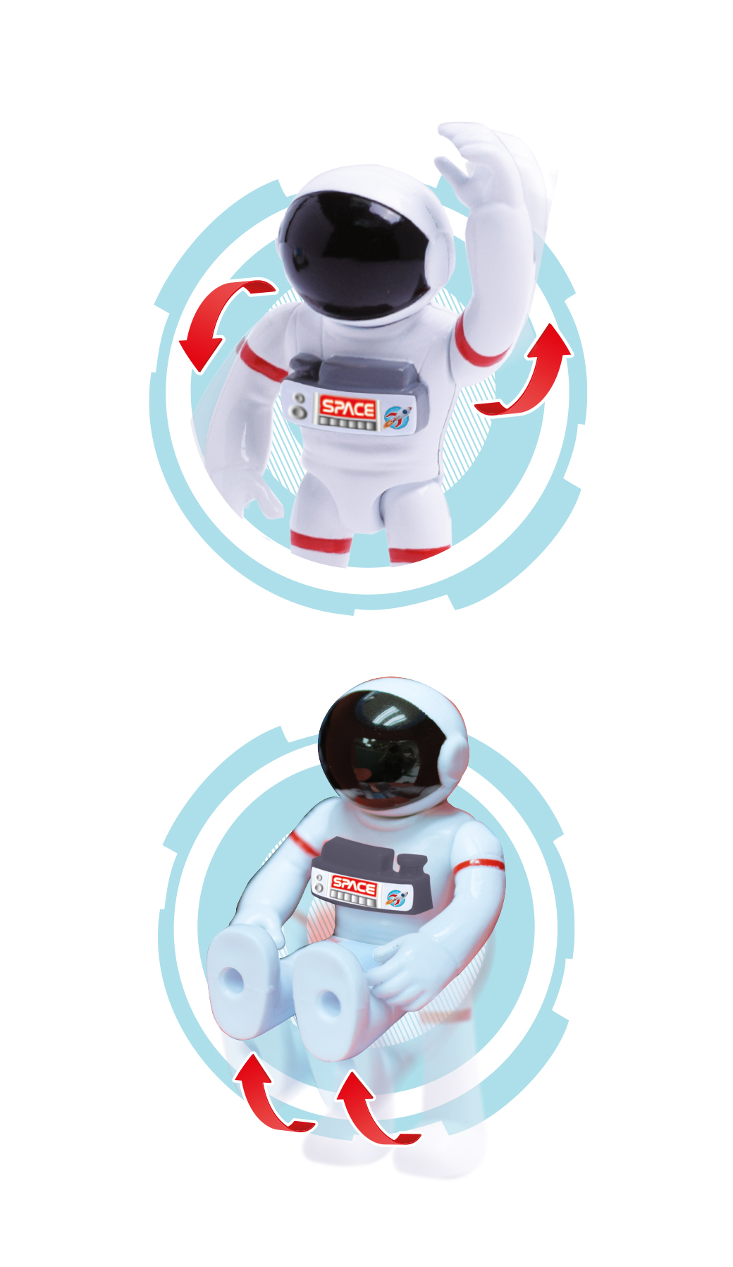 Figurka astronauty o wysokości 7,5 cm. Kompatybilna z całą serią Space Junior. Posiada ruchome ramiona i nogi.