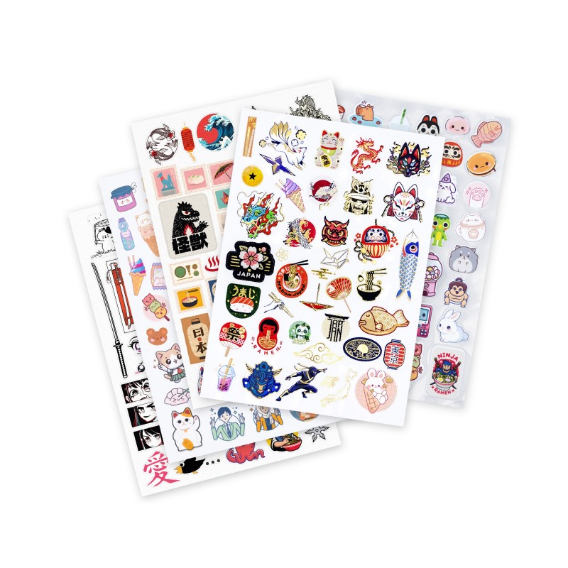 Zestaw ponad 200 naklejek w stylu mangi: sushi, postacie kawaii, bubble tea i wiele innych wzorów do wyboru!
