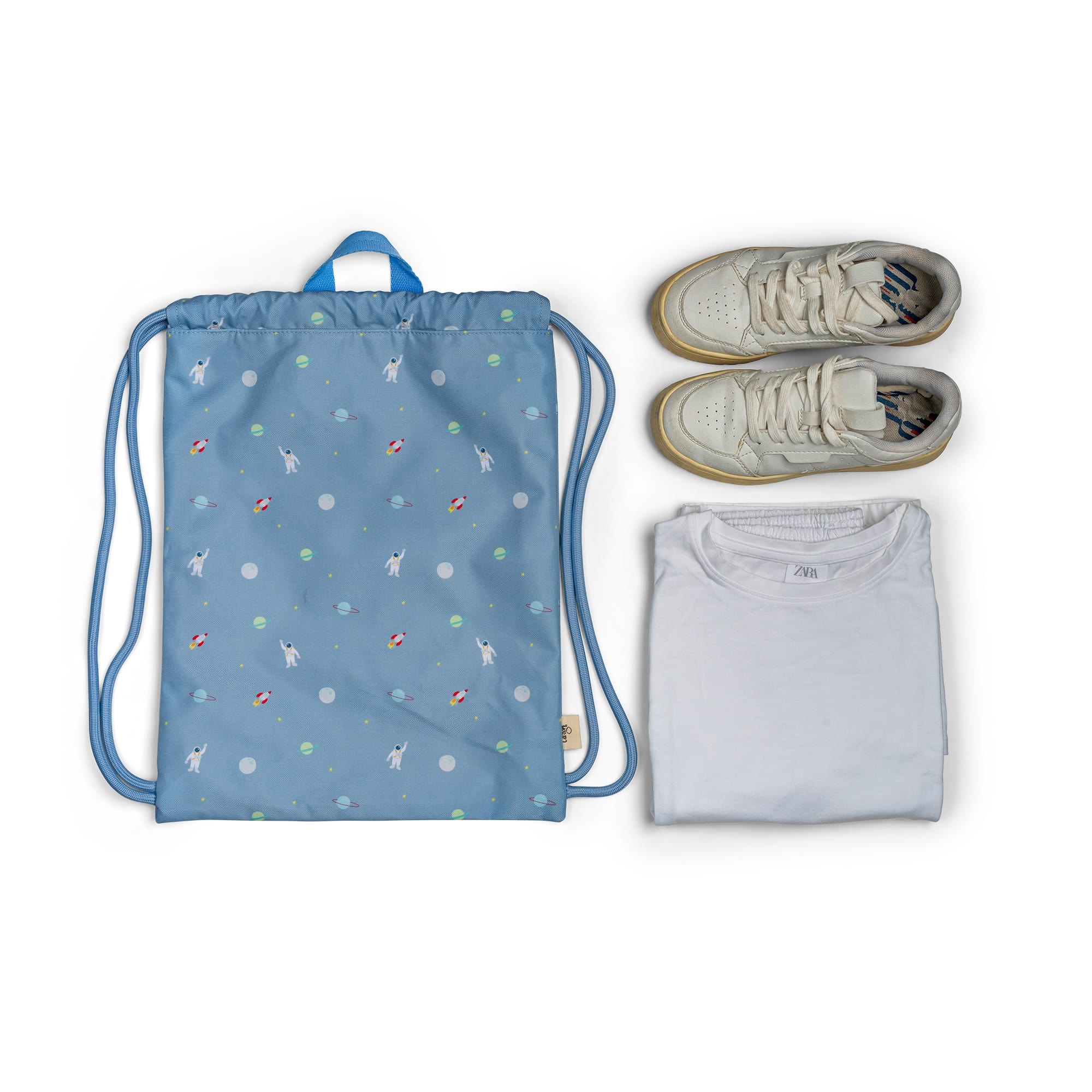 Wodoodporny i lekki worek ze sznurkiem to idealny dodatek na małe przygody. Jest wyposażony w wewnętrzną kieszeń i krótki uchwyt do zawieszania dla łatwego przenoszenia. Dzięki tym rozwiązaniom dzieci mogą go używać do przechowywania niezbędnych rzeczy pod ręką podczas wycieczek na basen, biwakowania, zabaw czy kapci w przedszkolu i szkole. Jest wodoodporny, dzięki czemu świetnie nadaje się do spakowania mokrych ubrań po lekcjach pływania.