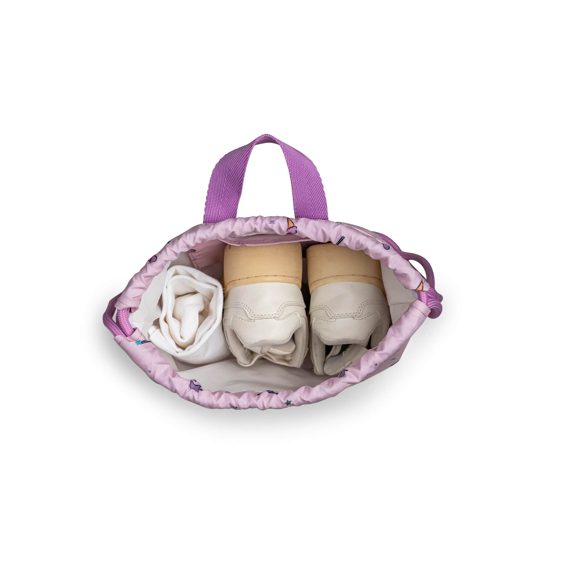 Wodoodporny i lekki worek ze sznurkiem to idealny dodatek na małe przygody. Jest wyposażony w wewnętrzną kieszeń i krótki uchwyt do zawieszania dla łatwego przenoszenia. Dzięki tym rozwiązaniom dzieci mogą go używać do przechowywania niezbędnych rzeczy pod ręką podczas wycieczek na basen, biwakowania, zabaw czy kapci w przedszkolu i szkole. Jest wodoodporny, dzięki czemu świetnie nadaje się do spakowania mokrych ubrań po lekcjach pływania.