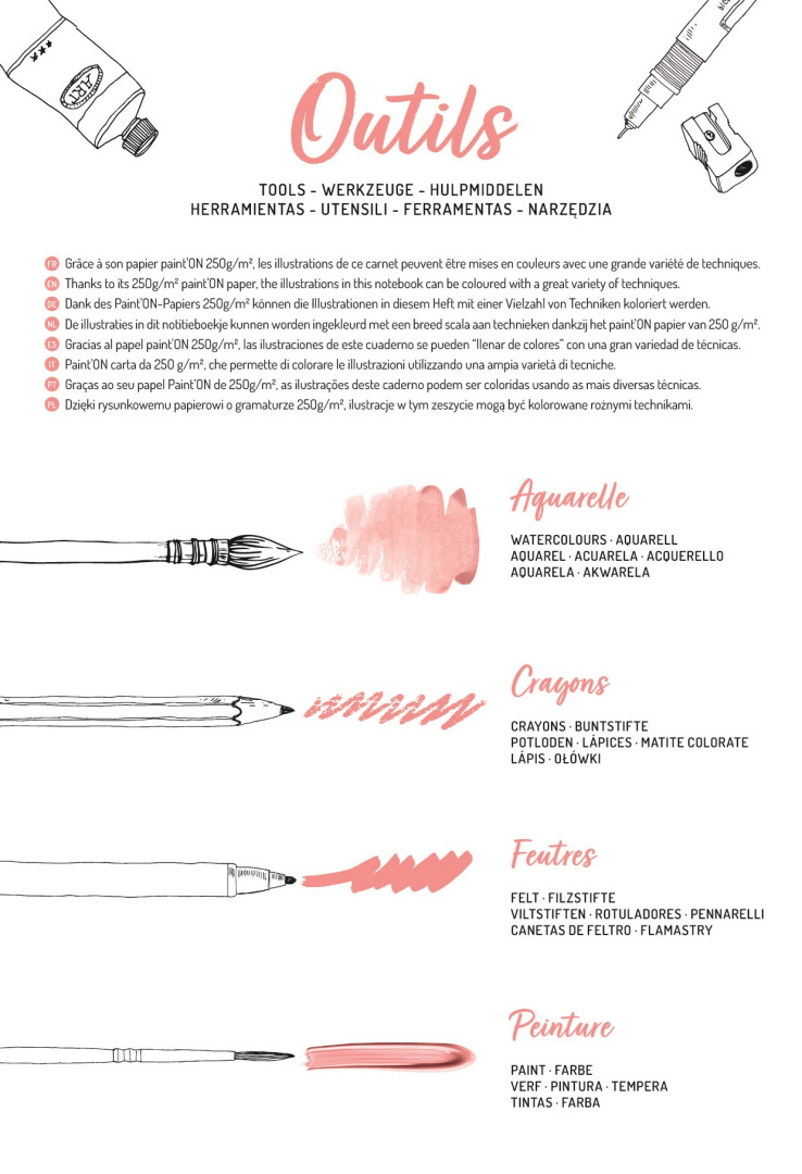 – tylna okładka ze sztywnej tektury, aby ułatwić kolorowanie w podróży lub plenerze