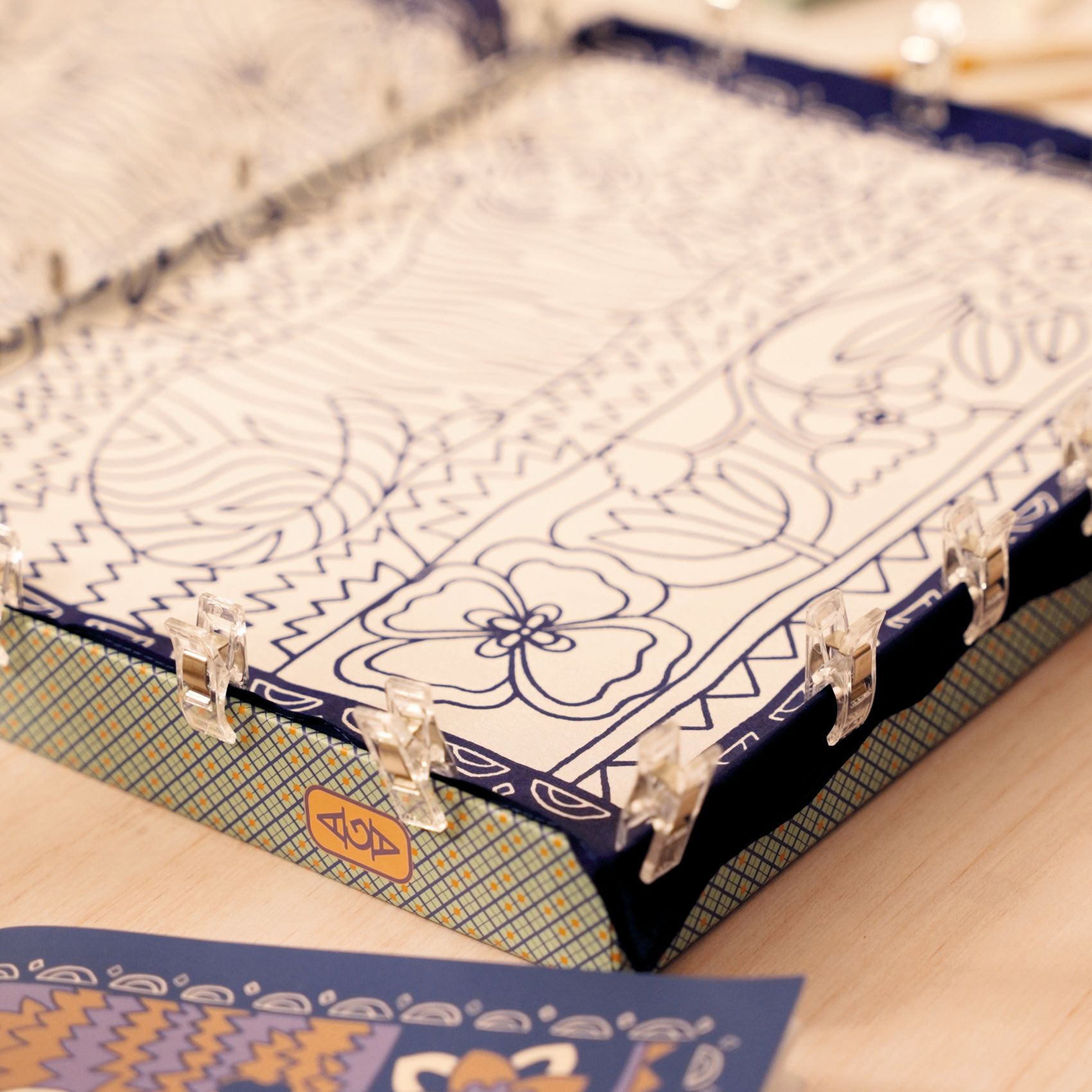 (wymiary 130 x 34 cm), ze specjalnie przygotowanymi konturami wzoru, które są oddzielone od siebie specjalną cienką powłoką, uniemożliwiającą przenikanie farby na sąsiednie pole.