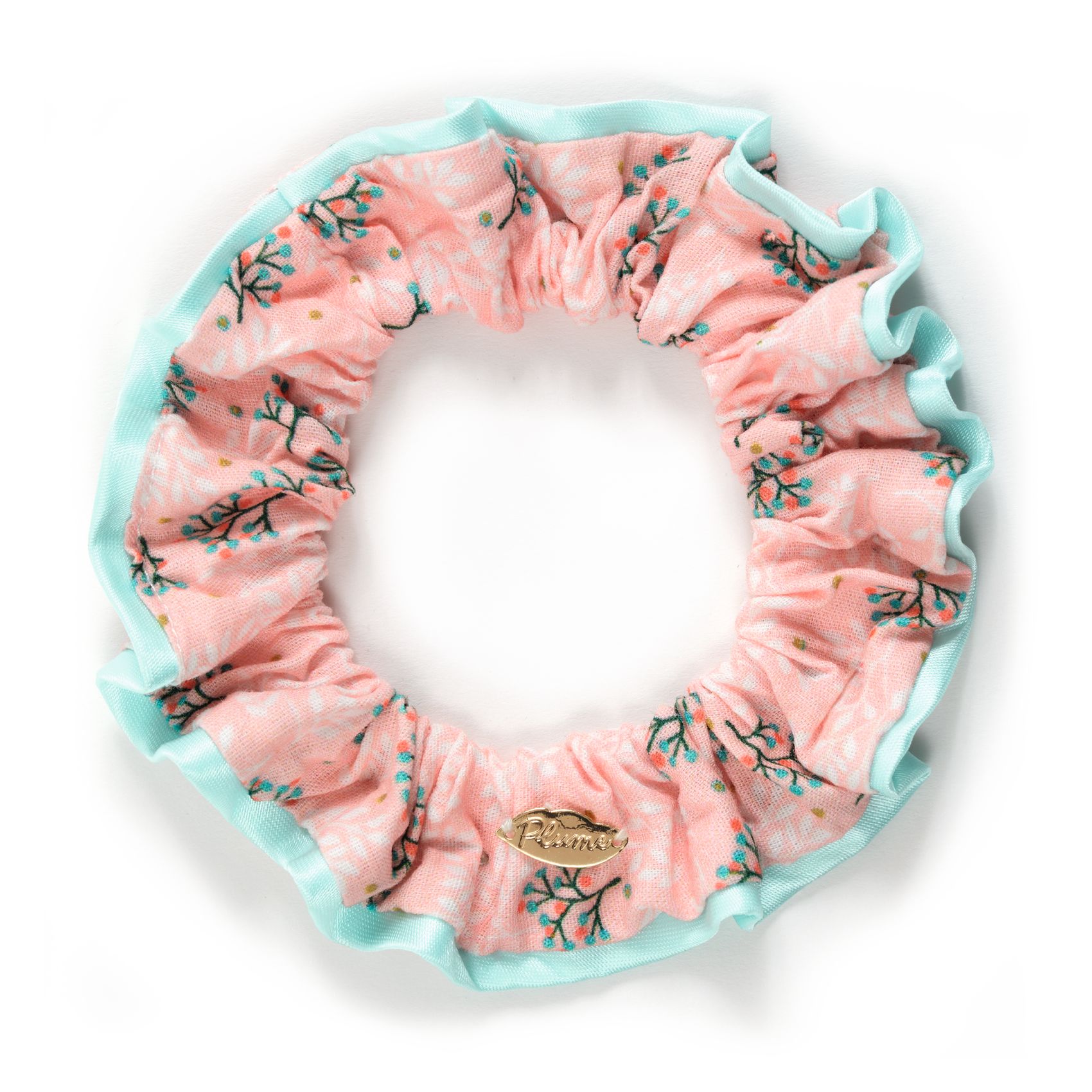 Temat przewodni LAS przedstawia gumkę do włosów typu scrunchie – Fleur. Wykonana z miękkiej, oddychającej bawełny i ozdobiona delikatną satynową lamówką w błękitnym kolorze. Eleganckiego wykończenia nadaje zawieszka z nazwą kolekcji w odcieniu złota. Elastyczna gumka idealnie utrzymuje fryzurę na miejscu, a jednocześnie jest delikatna dla włosów. Ciekawy wzór w odcieniu łososiowym z delikatnymi gałązkami naturalnie kojarzy się z motywem przewodnim – lasem.