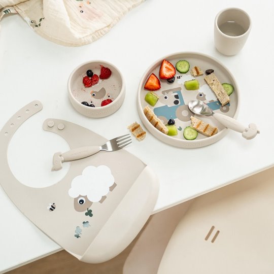 Done by Deer Zestaw Obiadowy z Przyssawką Tiny Farm Sand