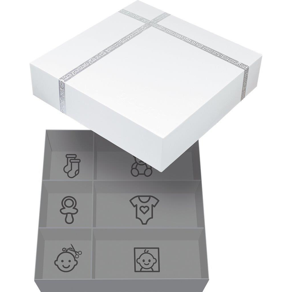 - Pudełko MEMORY BOX (ok. 24,5 × 24,5 × 8 cm) idealne do przechowywania pamiątek, takich jak pierwszy smoczek, pukiel włosków czy ząbek