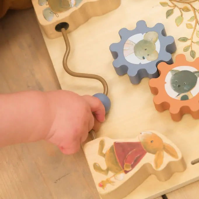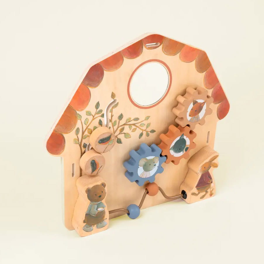 Drewniana gra zręcznościowa – tablica manipulacyjna dla najmłodszych.