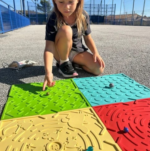Rozgrywka to doskonały sposób na spędzenie wartościowego czasu z rodziną oraz trening manualny zarówno dla dzieci jak i osób starszych! Matę można zwinąć w rulon i schować do szkolnego plecaka. Po rozwinięciu wystarczy ustawić szklane kulki na polach startowych i rozpocząć grę. Idealny pomysł na spędzenie przerwy w szkole i integrację koleżeńską, z dala od ekranów smartphonów. Mata nadaje się do gry zarówno na dworze jak i w domu. Idealna do zabrania w podróż lub na spacer do parku.