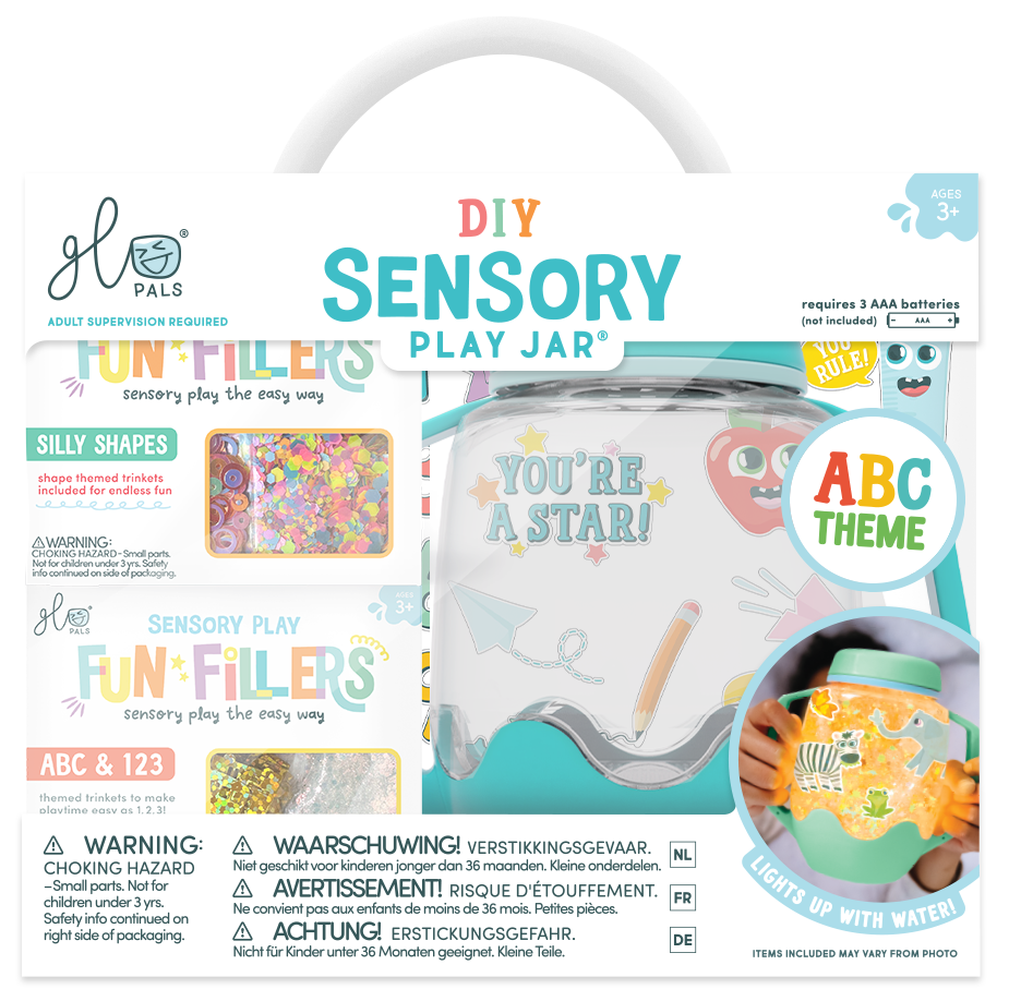 Glo Pals: ABC Zestaw sensoryczny DIY, świecący słoik z brokatami i figurkami Fun Fillers