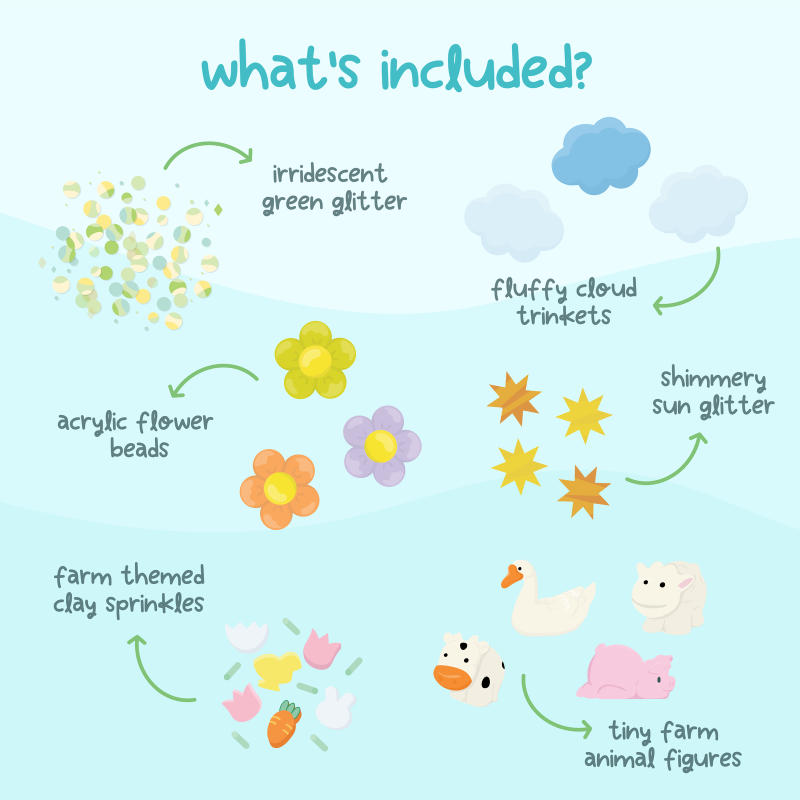 Glo Pals: FARMA Fun Fillers – Wkład, figurki, brokaty i barwniki do słoików, zabaw sensorycznych