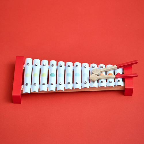 Ksylofon francuskiej marki Janod to kolorowa zabawka muzyczna z 12 tonami, która pozwala dziecku odkrywać świat dźwięków i uczyć się podstawowych nut. Dołączone dwie drewniane pałeczki są idealnie dopasowane do małych dłoni, co zachęca do radosnych eksperymentów z rytmem i melodią.