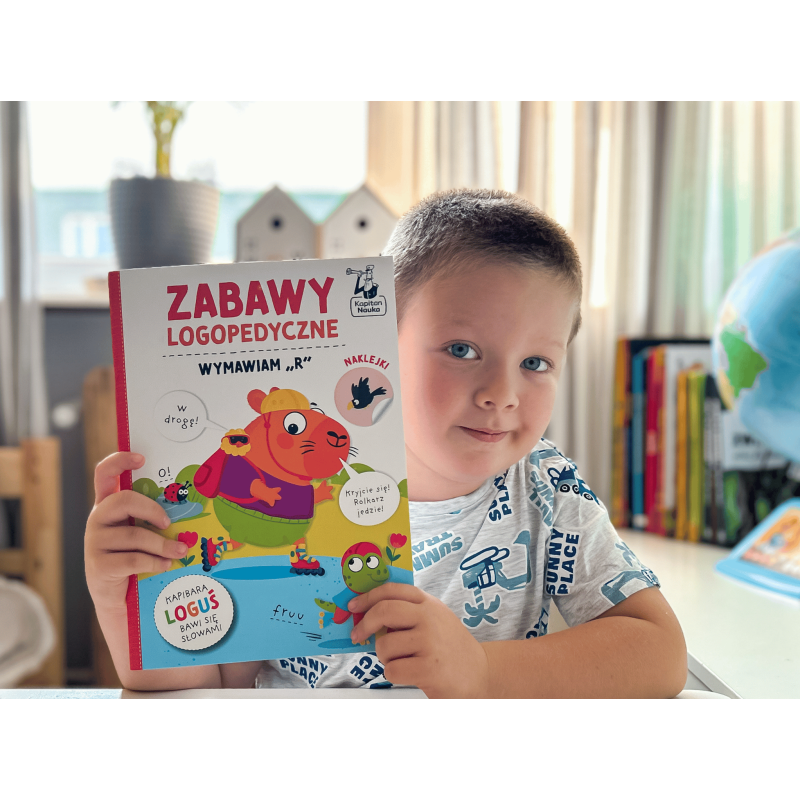 Zabawy logopedyczne. Kapibara Loguś. Wymawiam „r” to zbiór zadań, dzięki któremu dziecko uczy się prawidłowo artykułować głoskę „r”. Umiejętność jej wymawiania pojawia się zazwyczaj między piątym a szóstym rokiem życia. Czasami artykulacja „r” sprawia trudność również starszym dzieciom. Posłuchaj i przyjrzyj się, w jaki sposób dziecko wymawia tę głoskę. Może zastępuje ją głoskami „j” lub „l” (np. zamiast REKIN mówi LEKIN) albo zniekształca ją w inny sposób (np. poprzez niewłaściwe ułożenie narządów aparatu artykulacyjnego).