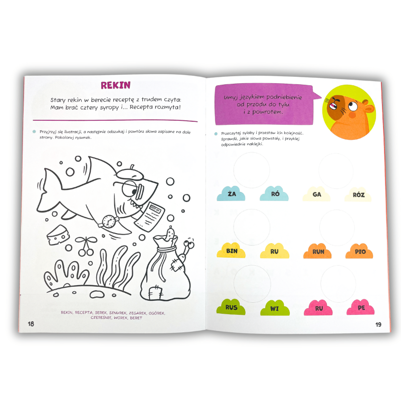 Seria Zabawy logopedyczne to zbiór zeszytów z zabawami aktywizującymi dziecko i zachęcającymi je do ćwiczenia prawidłowej wymowy.