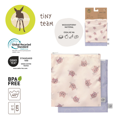 Lassig: Torebka na przekąski Snack Bag na suwak 2 szt. Tiny Team Kotek