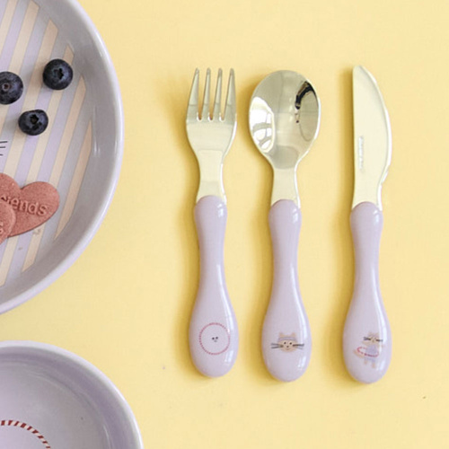 Lassig Zestaw sztućców ze stali nierdzewnej 3 el. Tiny Team Kotek