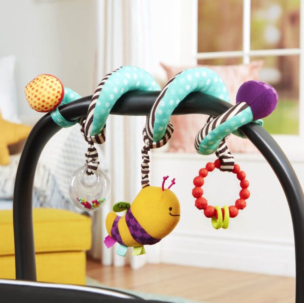 Grzechotka wielofunkcyjna z kolekcji Lew Jack belgijskiej marki Lilliputiens to idealna pierwsza zabawka dla niemowląt. Ma postać lwa z ciałem w kształcie miękkiej obręczy, łapami-uchwytami i nogami ze sznurków z funkcyjnymi stopami: jedna jest grzechotką, a druga silikonowym gryzakiem z wypustkami. W głowie wilka ukryte są szeleszczące elementy, a na jednej z łapek – piszczący element z naszywką Tukana Pablo. Zmysł dotyku pobudza też bujna grzywa Jack’a. Elementy zabawki wykonane zostały z tkanin o zróżnicowanych fakturach, m. in. futerko, welur. Zawieszkę można przywiązać w dowolnym miejscu za pomocą znajdujących się przy główce sznurków. Można ją mocować np. przy łóżku, pałąku, wózku, nosidełku czy foteliku samochodowym, umilając maluszkowi podróż. Jest solidnie wykonana i w pełni bezpieczna. Rozwija małą motorykę (chwytanie, potrząsanie, pocieranie), aktywizuje zmysł słuchu (szeleści, grzechocze) i dotyku.