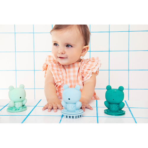 Zestaw 3 sensorycznych zabawek do kąpieli belgijskiej marki Lilliputiens to radosne trio, które zamieni codzienną pielęgnację w przygodę pełną śmiechu i wodnych eksperymentów. Każda z silikonowych figurek oferuje zupełnie inny sposób na zabawę: ciemnozielona żabka tryska wodą, niebieska posiada masujące wypustki i otworki, przez które woda wypływa jak delikatny deszcz, a jasnozielona tworzy niesamowitą bąbelkową pianę – wystarczy wlać odrobinę mydła do środka i dmuchnąć!