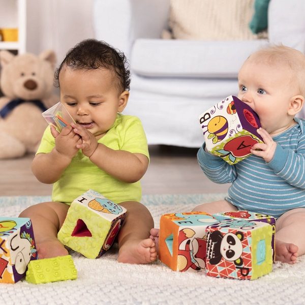 Zestaw 3 kostek aktywizujących z kolekcji Dżungla belgijskiej marki Lilliputiens to niebanalne, miękkie i wielofunkcyjne źródło rozrywki i nauki dla ciekawskich maluszków. Na każdym z boków każdej kostki znajduje się inne wyzwanie, m. in.: cyfry od 1 do 3, które trzeba posegregować w odpowiedniej kolejności, postać Krokodyla Anatola do ułożenia jak puzzle czy kieszonki lub schowki, w których należy ukryć dołączone do zestawu drewniane figurki – lwa Jacka, tukana Pablo oraz nosorożca Mariusa – odpowiednio na kostce z ich podobizną. Kostki zostały uszyte z materiałów o różnych wzorach i fakturach, są solidnie wykonane i w pełni bezpieczne. Zaskakują i pobudzają dziecięcą wyobraźnię. Rozwijają koordynację ręka-oko i małą motorykę (chwytanie, ciągnięcie, wkładanie, wyciąganie), aktywizują zmysł słuchu (jedna z kostek grzechocze, inna szeleści), wzroku i dotyku, uczą liczenia do 3, a poprzez zabawę w chowanie – dostrzegania związków przyczynowo-skutkowych.