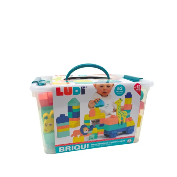 LUDI: KAUCZUKOWE klocki konstrukcyjne Briqui z pojazdem i zwierzątkami 12M+