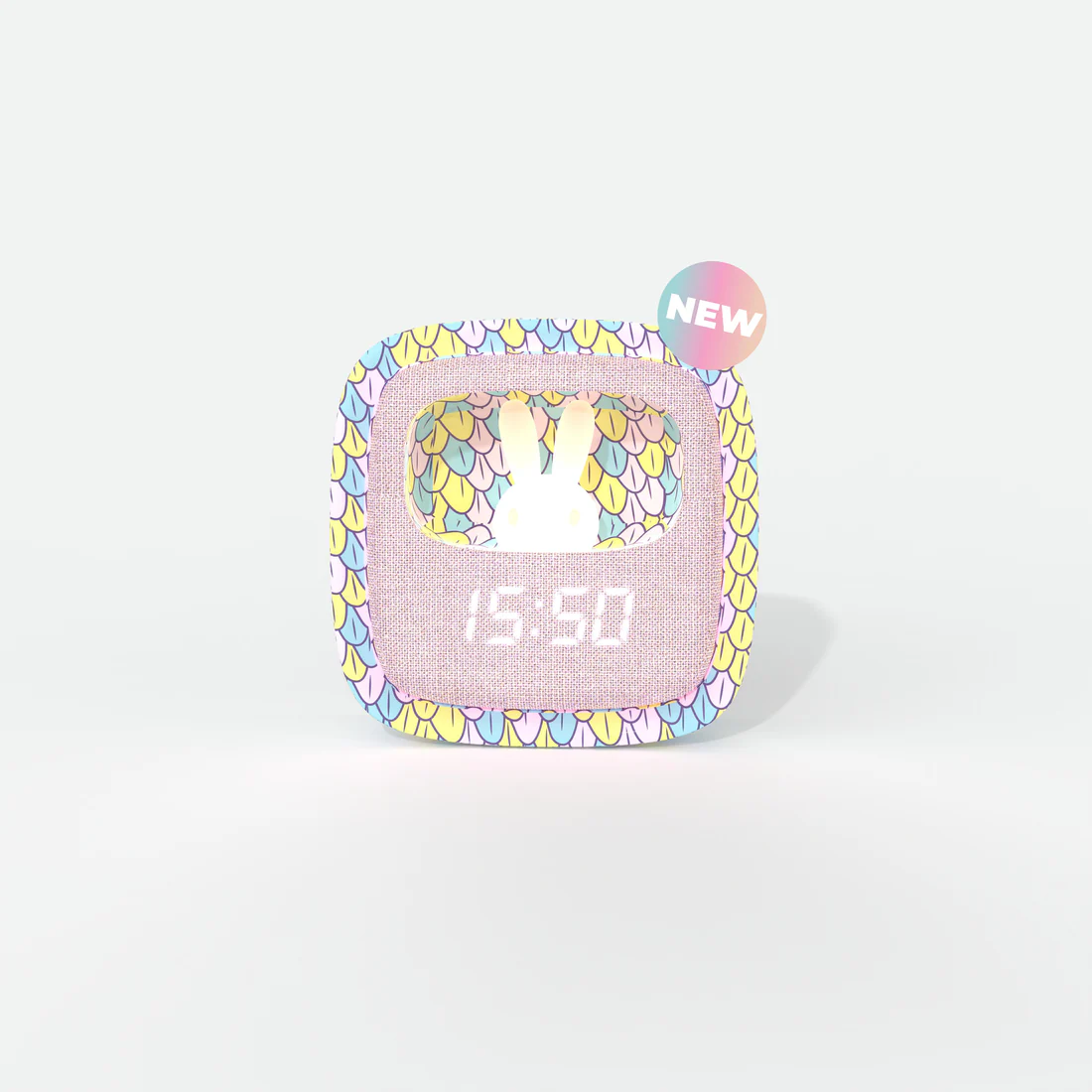 Wykonany z przyjemnej tkaniny i silikonu „soft-touch” zapewniającego miękkość. Przyciski z tyłu pozwalają ustawić: godzinę, datę oraz 3 alarmy, a łatwy w użyciu przycisk dotykowy na budziku pozwala regulować jasność.