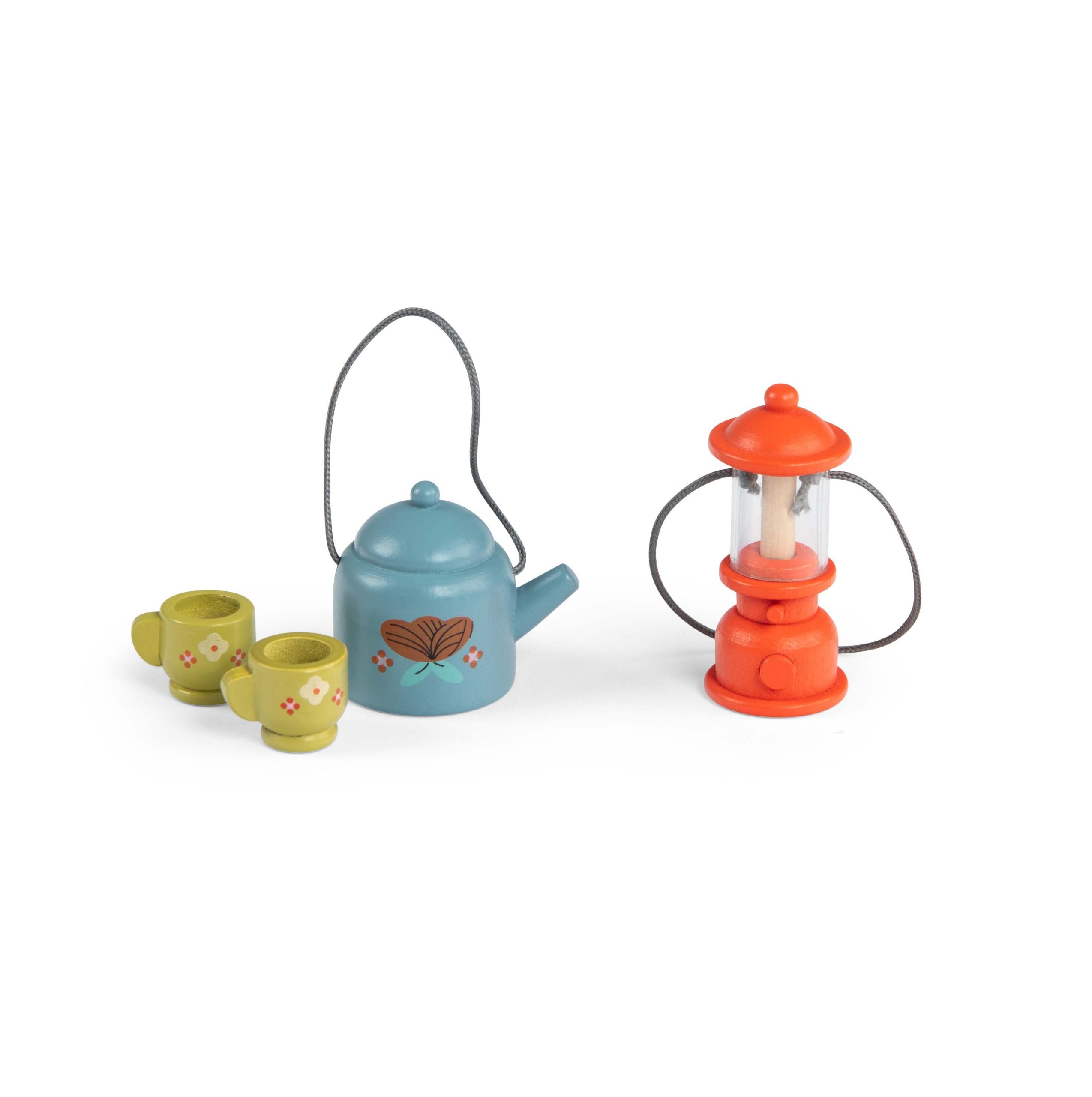 Zestaw zawiera akcesoria do zabawy misiami Les Minouchkas. Znajdziemy w nim uroczy kocyk, poduszki, banjo, lampkę, książki i zestaw do herbaty.