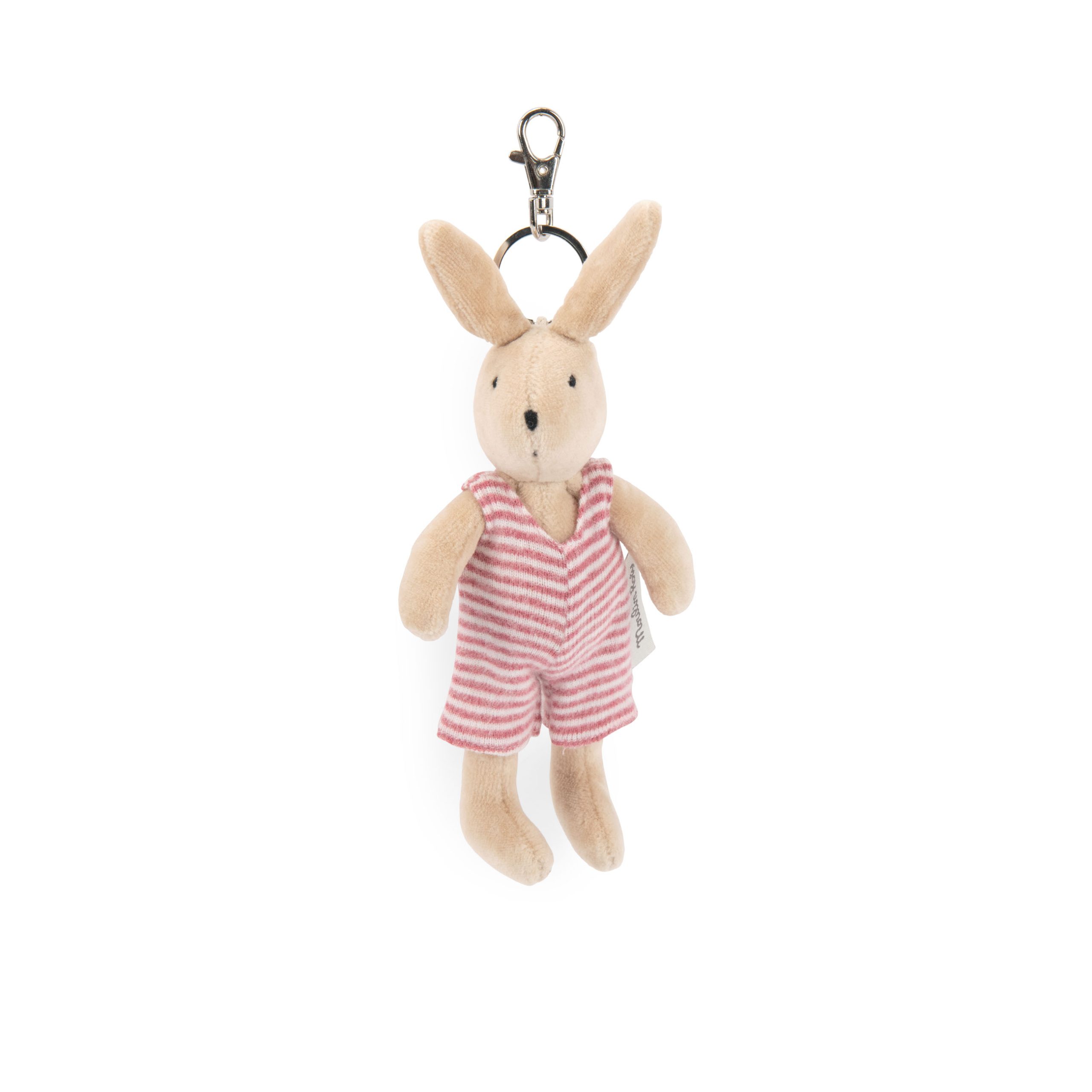 Uroczy króliczek Sylvain chętnie popilnuje kluczy lub będzie stanowić ozdobną przywieszkę do plecaka lub torebki. Ubrany jest w białe ogrodniczki w czerwone paski. Jego zabawna buzia zaciekawi każdego maluszka.