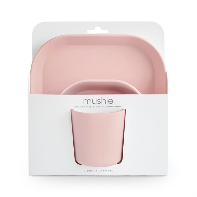 Zestaw naczyń Mushie w delikatnym kolorze ułatwia karmienie maluchów uczących się jeść samodzielnie. W zestawie znajduje się kubek, miseczka i talerz, co zapewnia wszystko, czego maluchy potrzebują, aby samodzielnie odkrywać przyjemność samodzielnego jedzenia. Zaprojektowane w Danii i wykonane z bezpiecznego plastiku PP, każda część łączy trwałość z charakterystycznym minimalistycznym stylem Mushie.