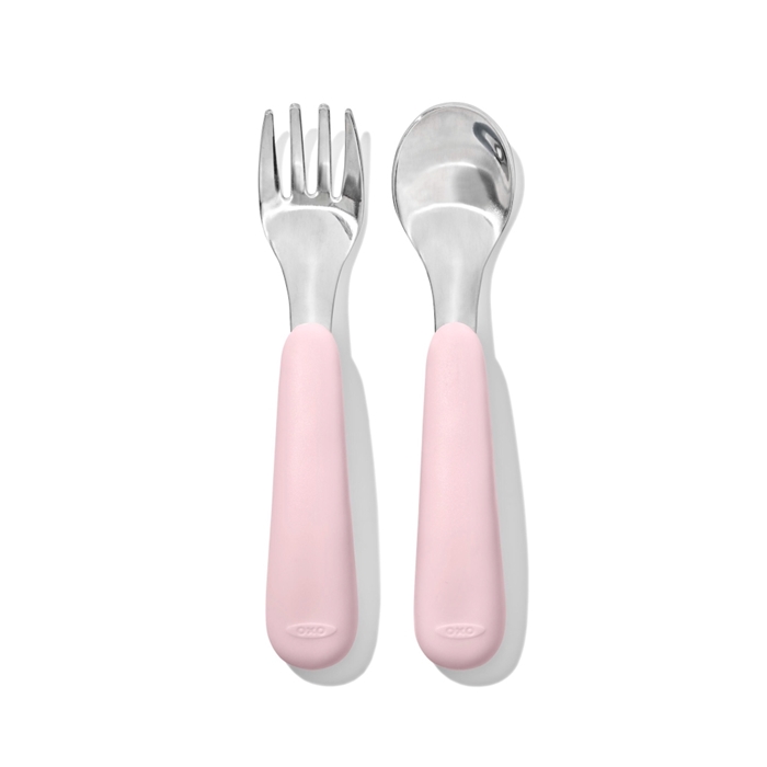 Zestaw sztućców z kolekcji OXO TOT składający się z łyżki oraz widelca oraz etui dostępny w nowym pastelowym kolorze. To rozwiązanie w sam raz dla malucha, który rozpoczyna naukę samodzielnego jedzenia. Specjalnie wyprofilowane kształty łyżki oraz widelca ułatwiają dziecku nabieranie odpowiednich porcji jedzenia. Silikonowe uchwyty sprawiają, że sztućce nie wyślizgną się z rączki malucha. Ich kształt dopasowany został do małych dziecięcych dłoni i ich umiejętności chwytnych. Wklęsły punkt pod spodem silikonowych uchwytów zapobiega zsuwania się sztućców ze stołu. Do zestawu dołączone jest etui, które ułatwia transport dziecięcych sztućców, gdy wybieramy się z wizytą do dziadków, przyjaciół czy do restauracji.
