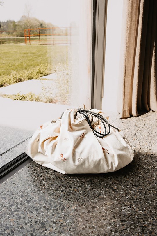 Oszczędność czasu, miejsca, mobilność, łatwość przechowywania, przestrzeń do kreatywnej, swobodnej zabawy, piękny design, jakość i bezpieczeństwo podczas zabawy – czy potrzebujesz więcej argumentów, by wybrać worek na zabawki i matę do zabawy Play&Go 2 w 1?