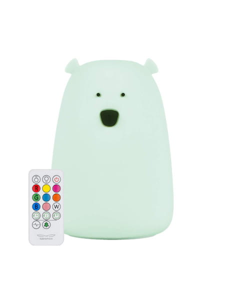 Rabbit & Friends: Duży Miś Lampka silikonowa z pilotem, Mięta