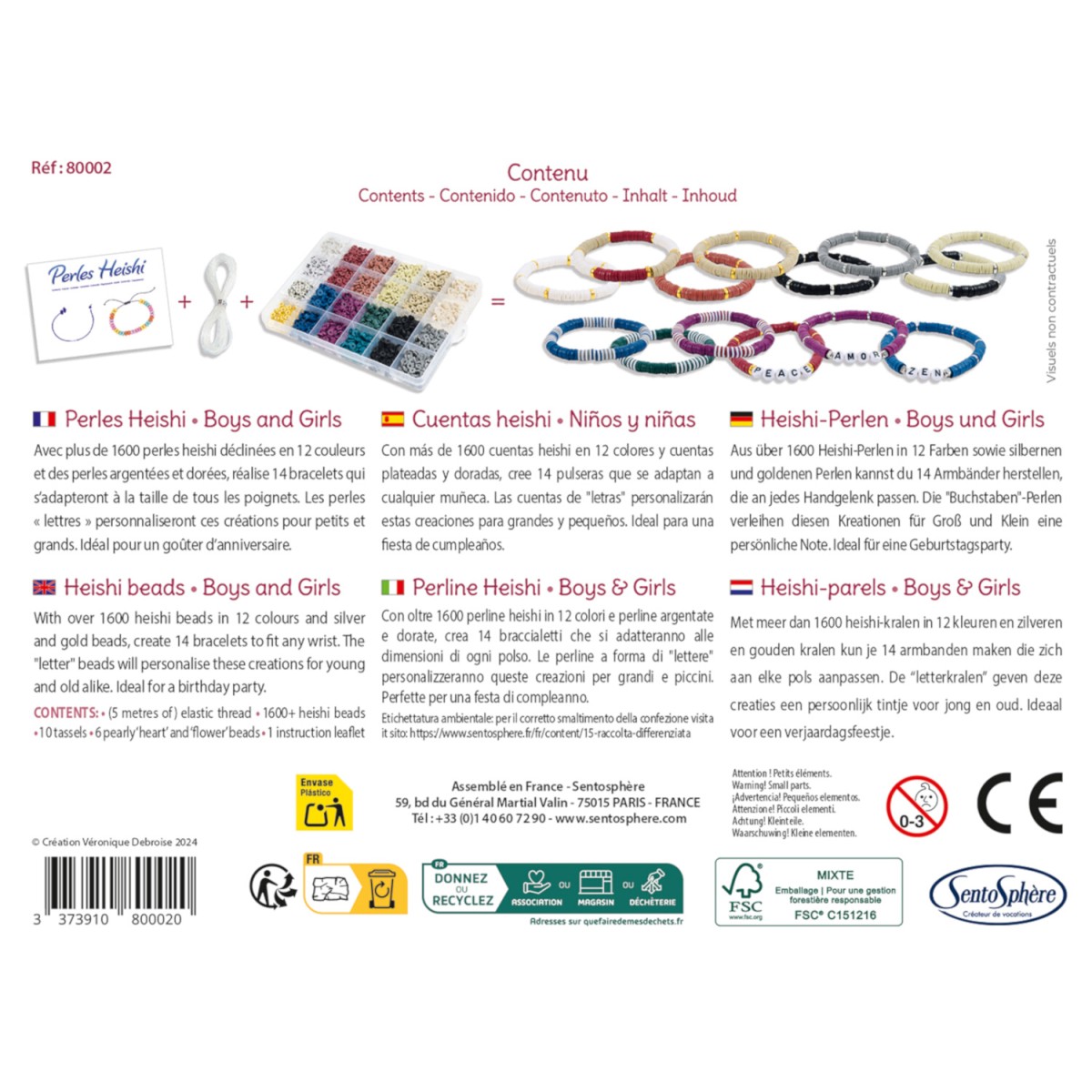 Ponad 1600 cienkich koralików Heishi w 12 jesiennych kolorach pozwala na wykonanie około 14 bransoletek, które będą pasować na każdy nadgarstek. Srebrne i złote koraliki oraz litery pozwolą spersonalizować bransoletki, które zachwycą zarówno chłopców, dziewczynki, jak i ich rodziców!