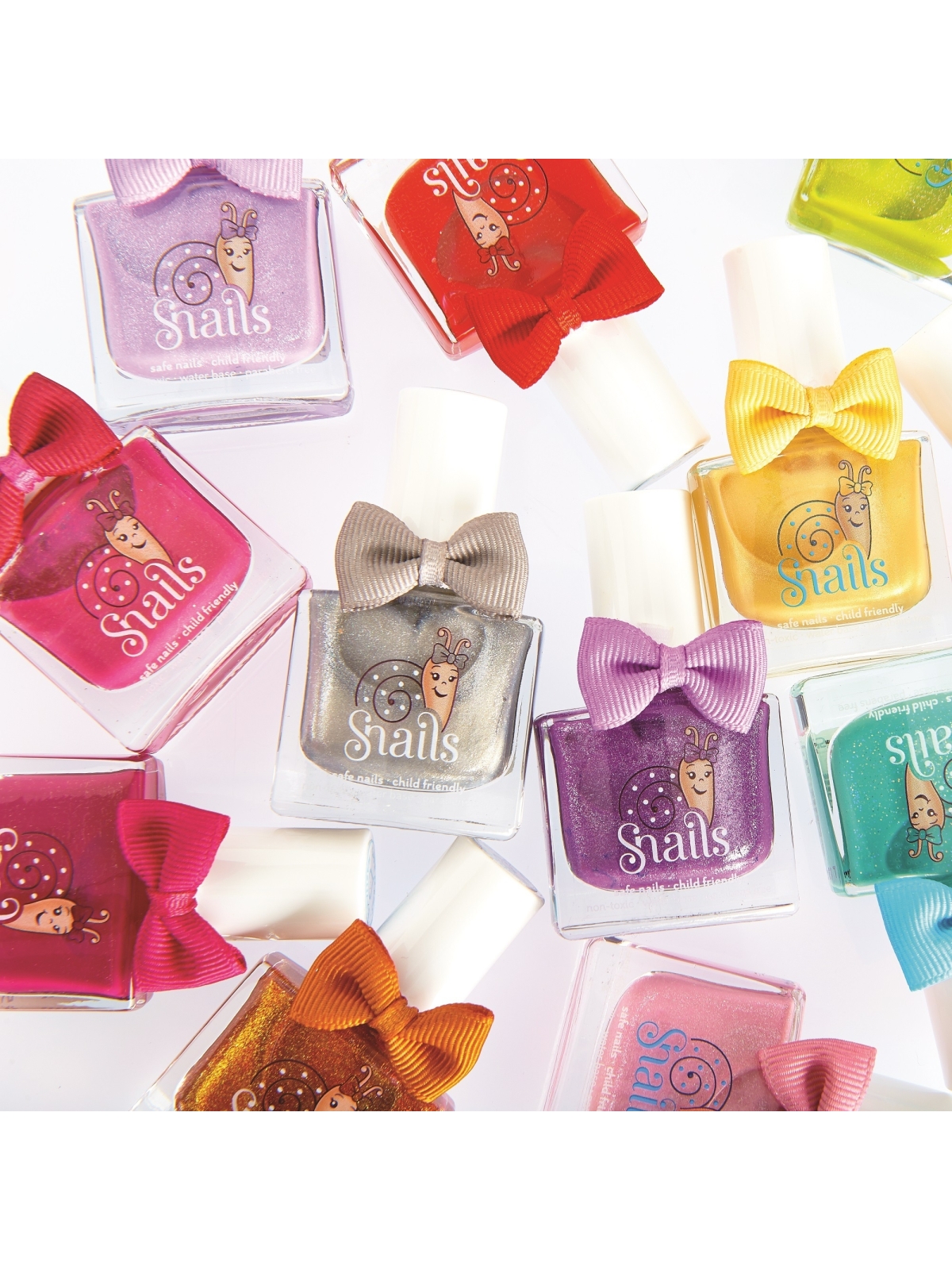 Lakiery do paznokci firmy Snails (Snails, czyli safe nails) - produkowane na bazie wody kosmetyki, łatwo zmywalne, wolne od Toluenu, Formaldehydu, DBA i BPA. Receptury kosmetyków opierają się na opatentowanej formule trzech składników: wody, polimeru akrylowego i nietoksycznych barwników. Gama produktów jest bardzo szeroka: lakiery, brokaty, utwardzacze, naklejki, a wszystko to po to, aby zabawa była jeszcze fajniejsza. Produkty łatwo się zmywają - wystarczy mydło i woda.. i można malować od początku.