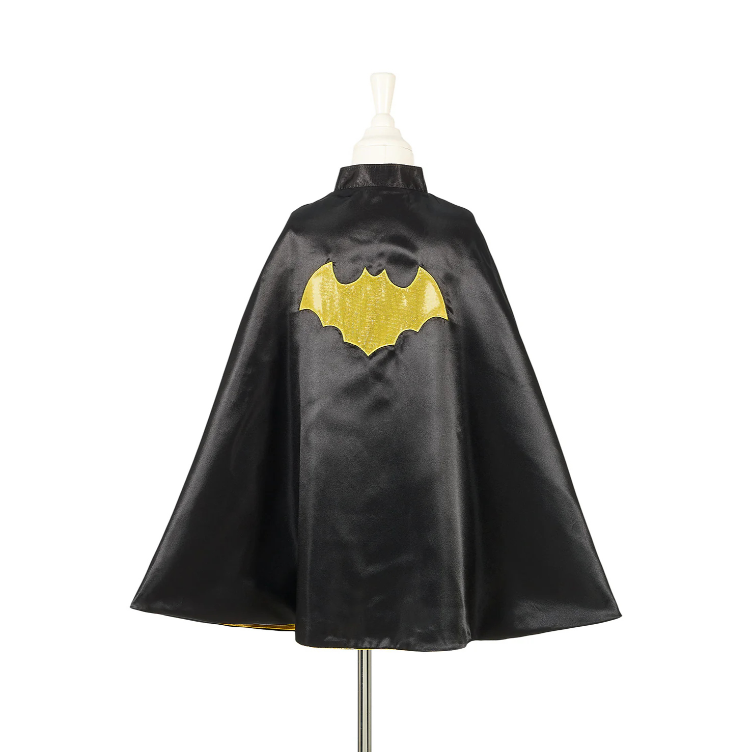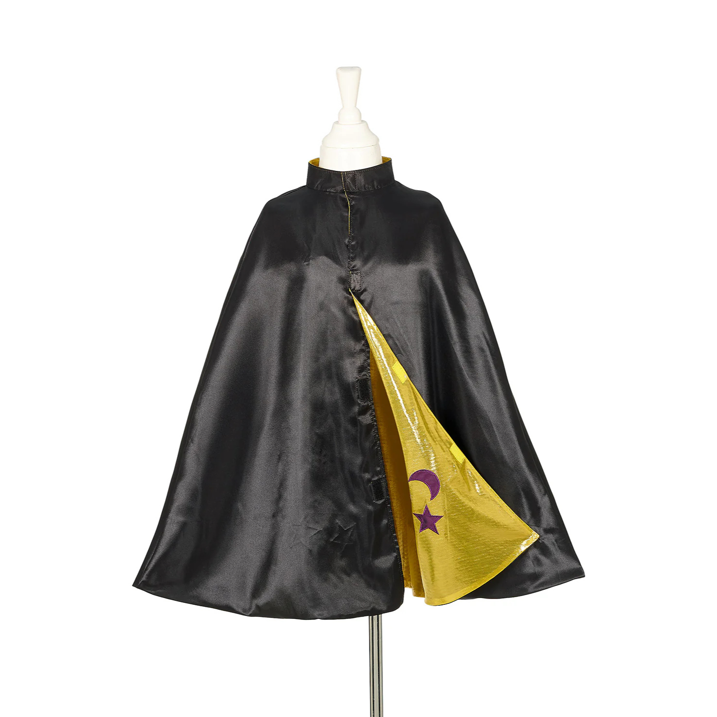 Kostium peleryna dwustronna Magik/Nietoperz holenderskiej marki Souza! to przepiękne, kunsztownie wykonane przebranie, które zachwyca dbałością o detale. Peleryna jest rozkloszowana i efektowna. Z jednej strony czarna, z wyszywanym na plecach złotym nietoperzem, z drugiej – błyszcząca, złota, ozdobiona fioletowymi aplikacjami gwiazd i księżyca. Ma elegancką stójkę, zapinana jest na rzepy, a przy tym miękka i komfortowa w noszeniu. To idealny strój na bal przebierańców, Halloween, Sylwestra czy urodziny. Doskonale sprawdzi się także jako prezent.