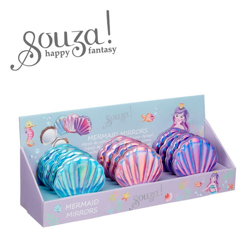 Lusterko kosmetyczne w kształcie muszli holenderskiej marki Souza! to uroczy i praktyczny gadżet dla każdej małej dziewczynki. Wewnątrz znajdują się dwa lusterka, a składana konstrukcja chroni je przed zarysowaniami i ułatwia przenoszenie.