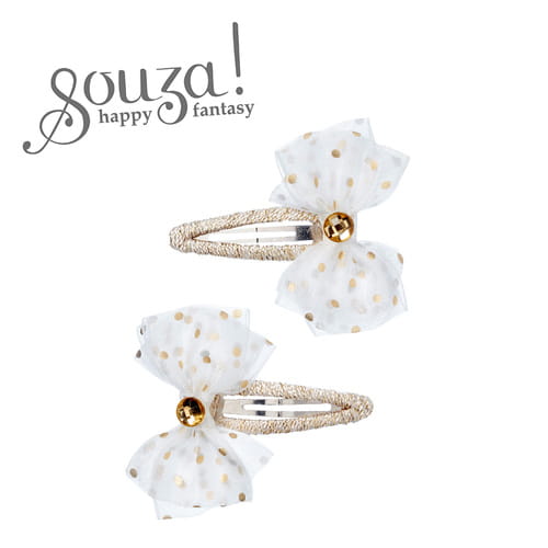 Souza! Spinki do włosów złote z białymi kokardkami Fardou 2 szt.