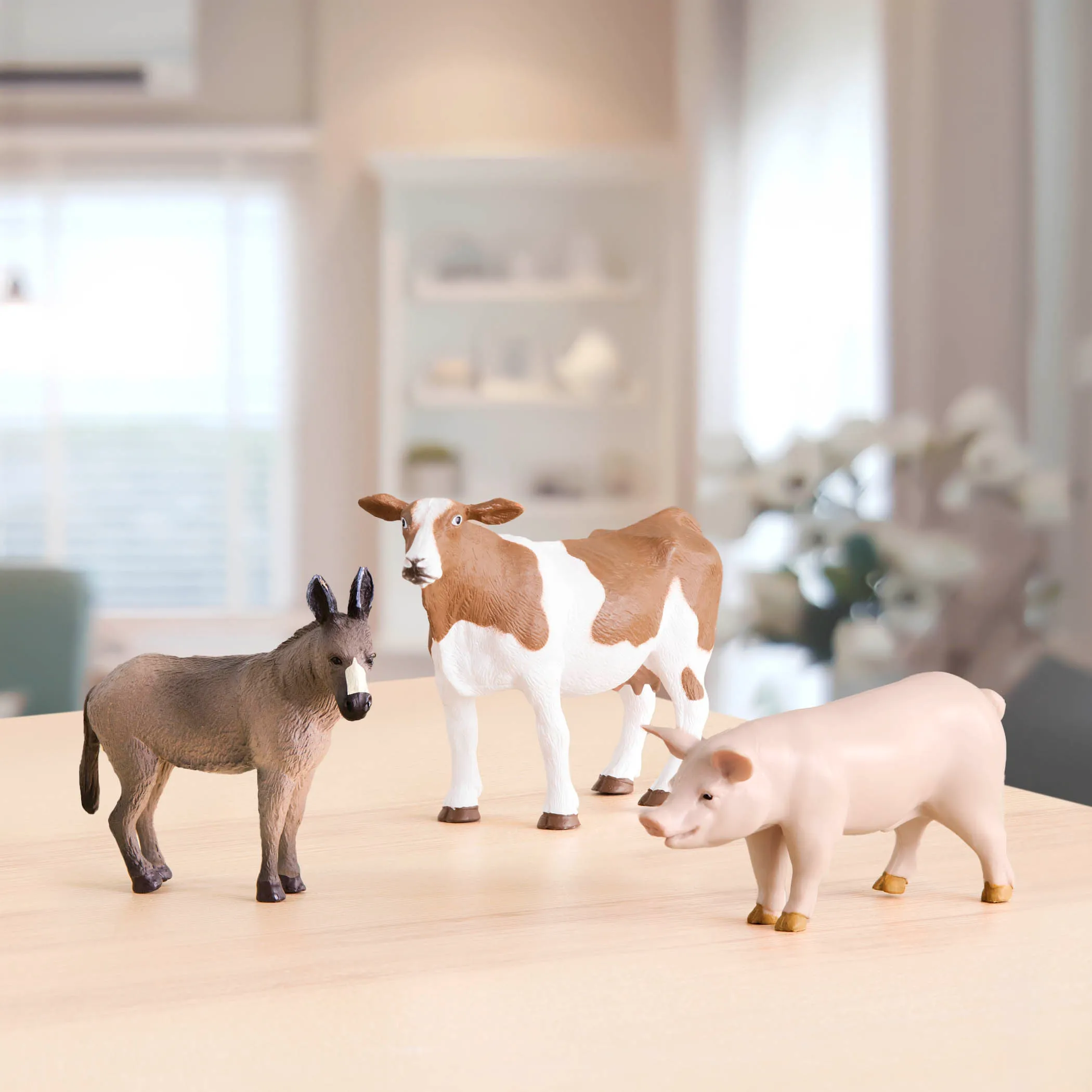 Zawartość opakowania: 1 figurka krowy rasy holsztyńskiej, 1 figurka świni, 1 figurka osła
