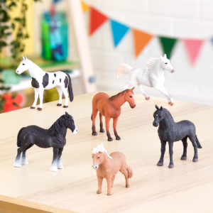 Zarówno maluchy, jak i kolekcjonerzy pokochają te urocze i realistyczne miniaturowe zwierzęta od Terra by Battat. Każdy koń ma indywidualne cechy i detale; od szybkiego Quarter Horse’a, przez wdzięcznego Lipicana, po pracowitego Shire’a. Starannie wykonane konie są wykonane z bezpiecznego i wytrzymałego plastiku, który świetnie prezentuje się w każdej kolekcji figurek zwierząt.