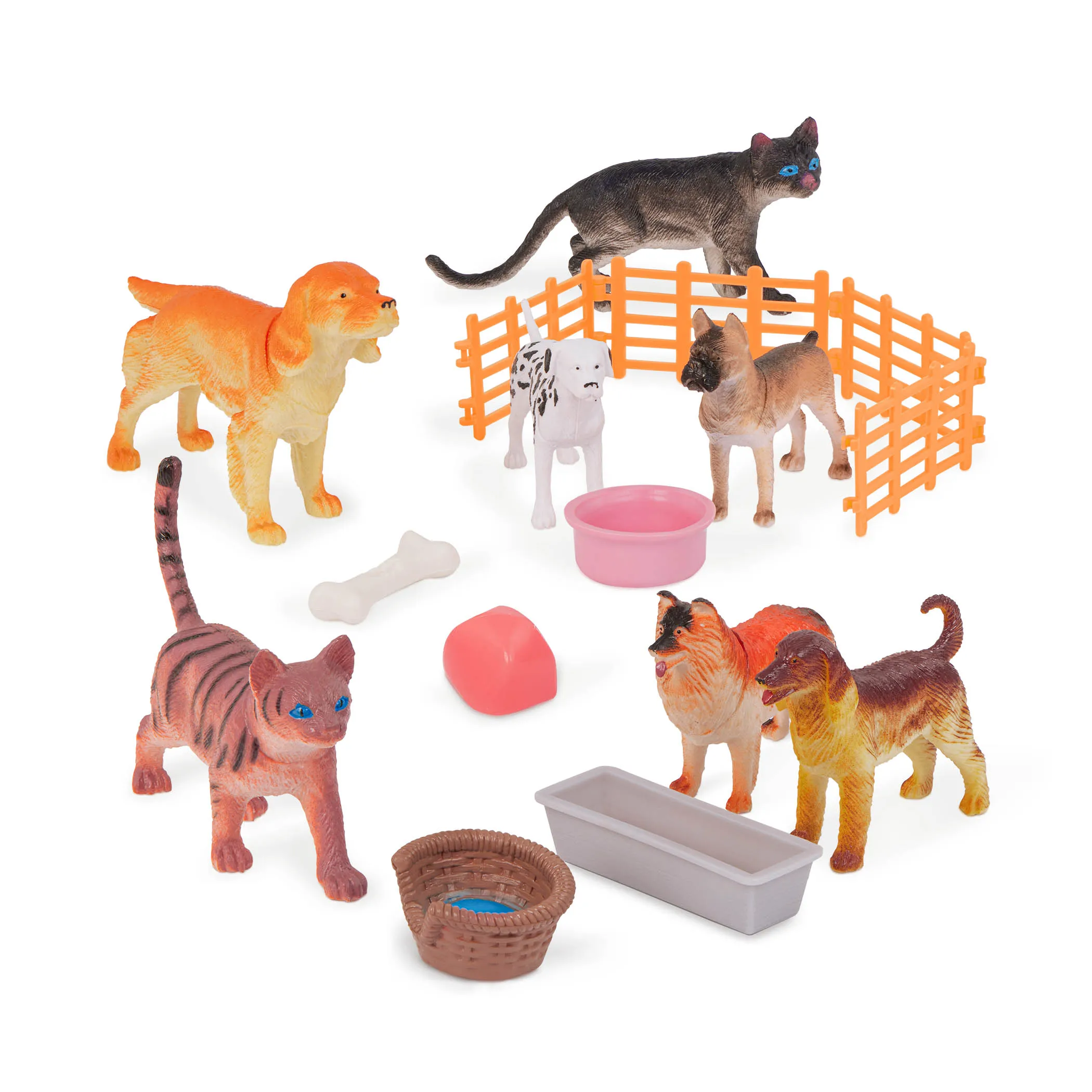 Terra by Battat: Zestaw zwierząt z AKCESORIAMI 60 el. – Świat PSÓW i KOTÓW