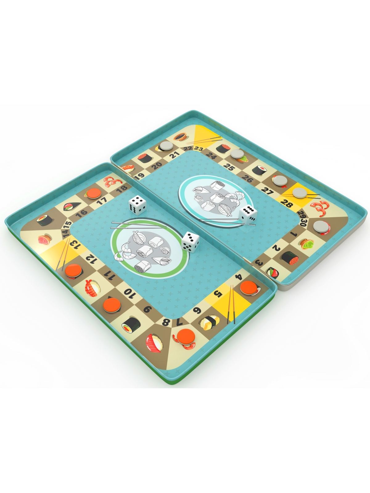 Zasady gry Sushi Race: Gracze rzucają trzema kostkami i z uzyskanych liczb tworzą działanie matematyczne, którego wynik odpowiada wolnemu polu na planszy. Jeśli obliczenie jest poprawne, gracz kładzie swój magnes na tym miejscu – zdobywa w ten sposób kawałek sushi. Wraz z postępem gry coraz trudniej znaleźć wynik pasujący do wolnych pól, dlatego kluczowe stają się dwie cechy: kreatywność i szybkie myślenie. Rozgrywka kończy się, gdy wszystkie pola zostaną zajęte lub gdy jeden z graczy wypełni 16 pól sushi. Zwycięża ten, kto na koniec gry zgromadzi najwięcej magnetycznych znaczników.